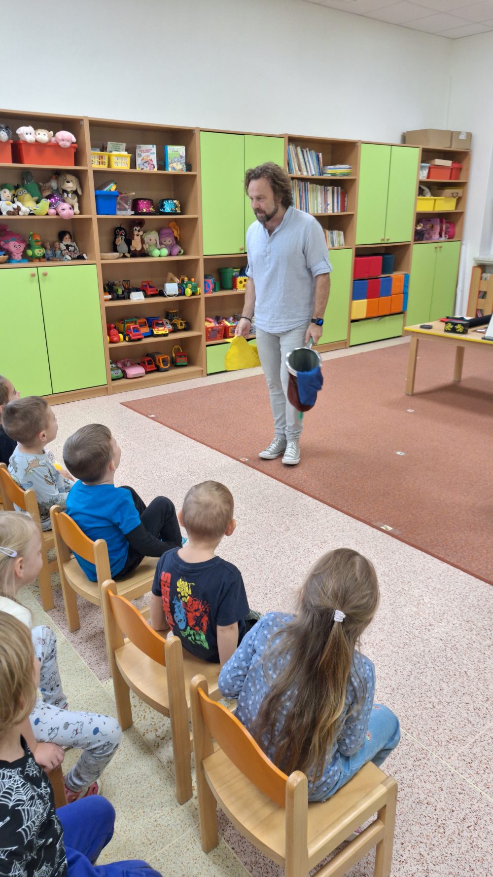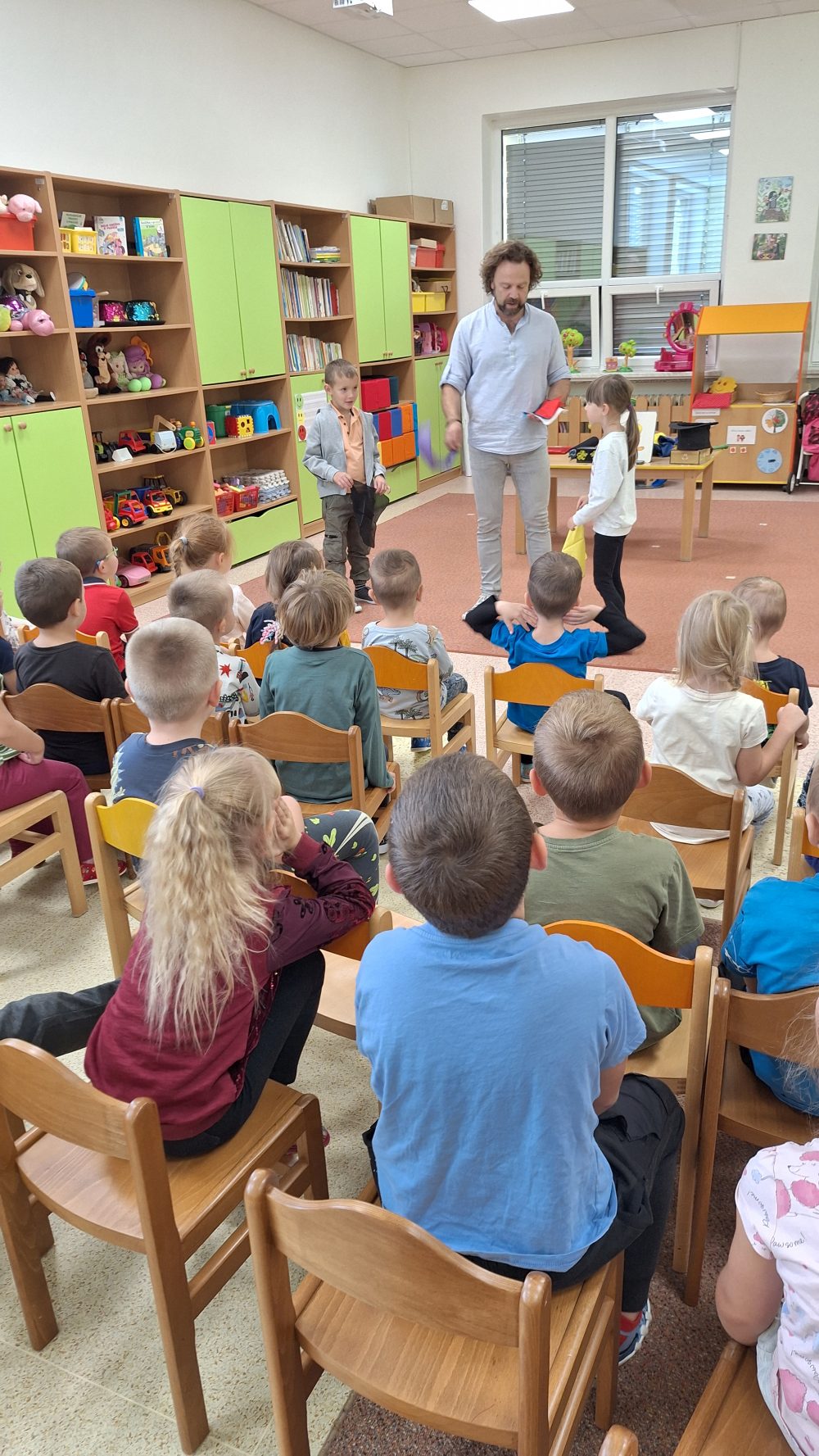 V pátek zavítal do naší školky kouzelník a herec, pan Tomáš Šulaj. Svým programem pobavil nejen třídu Sluníček a Motýlků, ale i prvňáčky. Do svých kouzel a zaklínadel zapojil také naše děti a na závěr je naučil trik s kouzelnickou hůlkou.