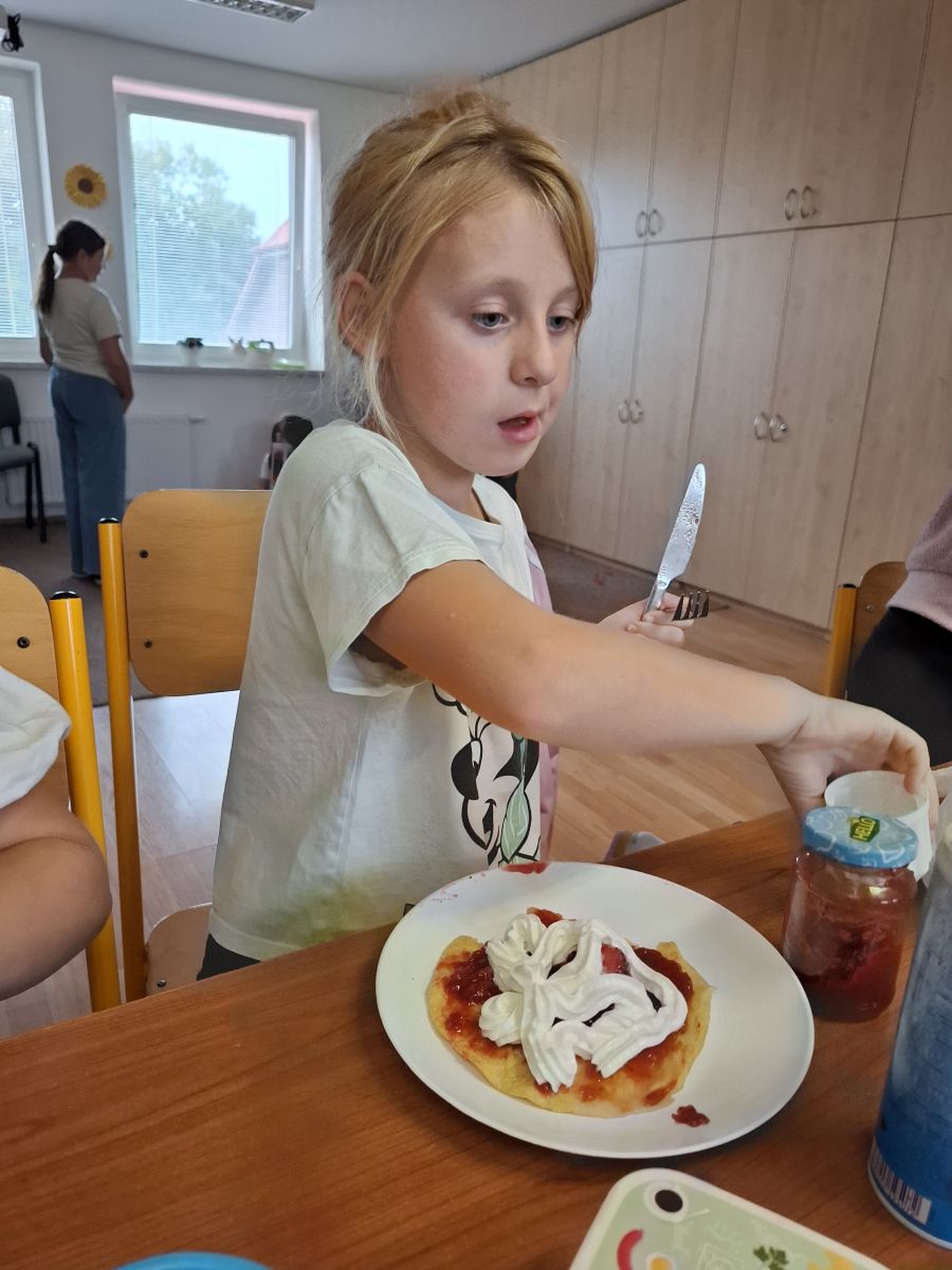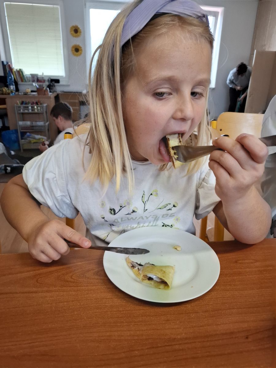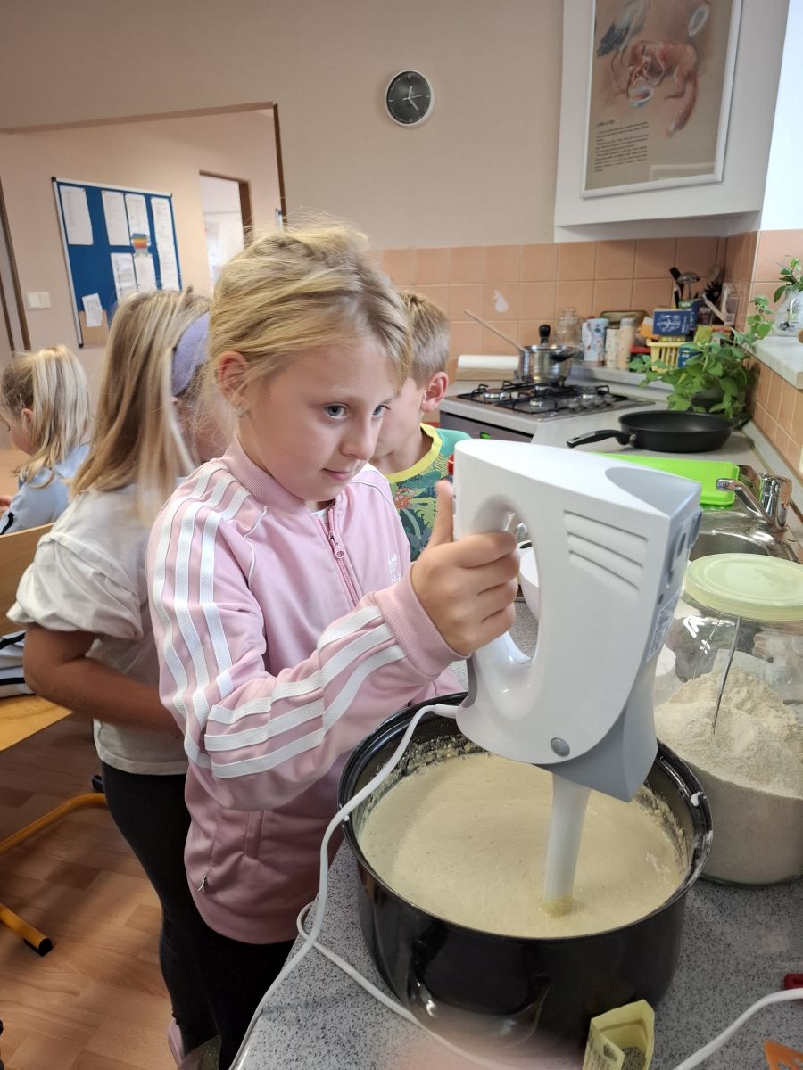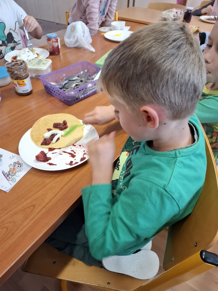 Při prvním setkání v kroužku vaření jsme s druháčky připravili palačinky plné bílkovin a vlákniny. Letos se zaměříme na přípravu zajímavých a jednoduchých pokrmů. Ukážeme si, jak lze použít zdravé potraviny a upravit je tak, aby bylo jídlo chutné.